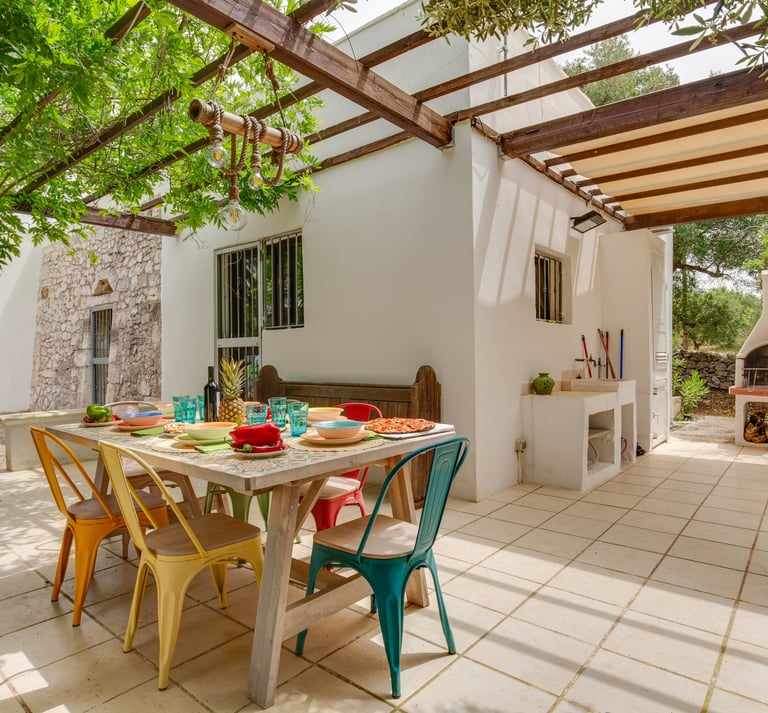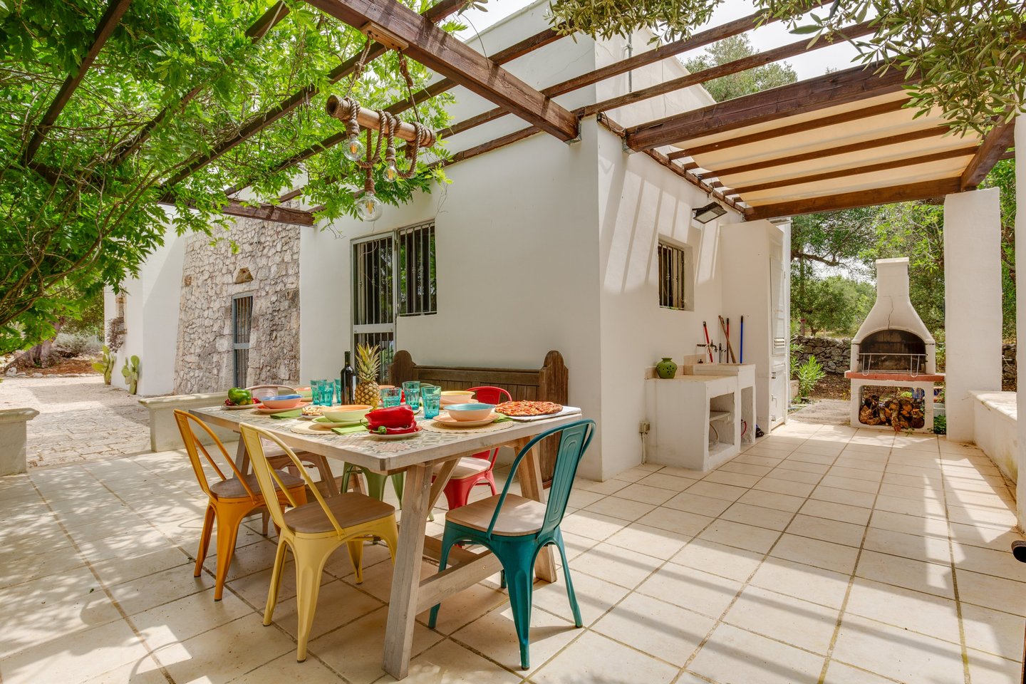 Dieses Anwesen besteht aus einer Villa und einer separaten Trulli-Dependance. Die helle Villa bietet ein Wohnzimmer mit Küche, zwei Schlafzimmer und zwei Bäder, mit direktem Zugang zum Garten und Pool.