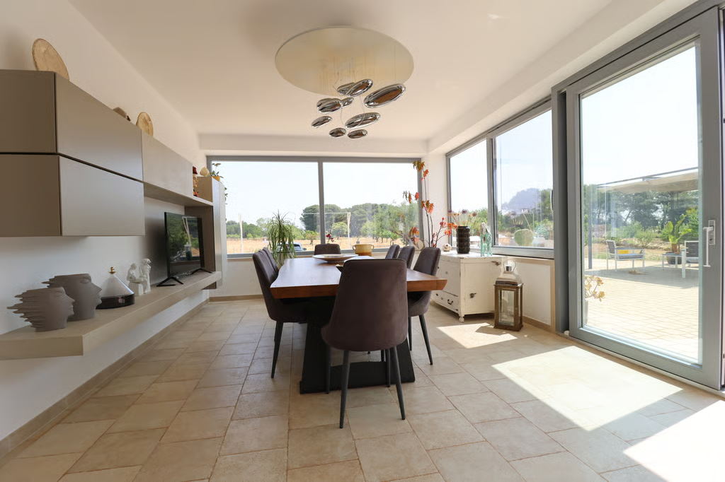 Diese zweistöckige Villa, ca. 3 km von Martina Franca entfernt, liegt in einem 13.000 m² großen Waldpark mit Kiefern, Feigen-, Kirsch- und Nussbäumen und bietet Waldblick. Das Untergeschoss umfasst Garage, Abstellräume, Bad, Waschküche und Zentralheizung. Im Erdgeschoss befindet sich eine ca. 190 m² große Wohnung mit doppeltem Wohnzimmer und Kamin, drei Schlafzimmern, zwei Bädern und einer 70 m² großen Veranda. Die Immobilie ist auch mit landwirtschaftlichen Fahrzeugen über zwei Zufahrtswege erreichbar.