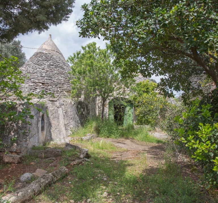 Das Anwesen besteht aus renovierungsbedürftigen Trulli in der Landschaft von Ceglie Messapica, die miteinander verbunden sind und mit Kamin und Holzofen ausgestattet sind. Das ca. 13.500 m² große Grundstück ist mit Olivenbäumen bepflanzt. Die Nähe zum Ort und zur Provinzstraße macht die Immobilie auch ideal für touristische Nutzung. Ceglie Messapica, die gastronomische Hauptstadt Salentos, liegt im Herzen des berühmten Itria-Tals, bekannt für seine Landschaft, Kultur und Traditionen.