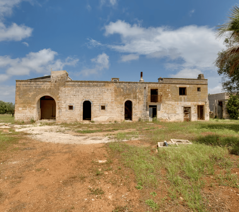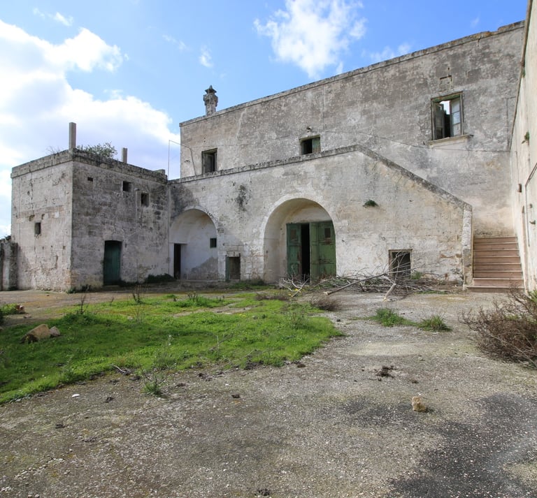 Authentische, restaurierungsbedürftige Steinmasseria nahe Ostuni und Torre Guaceto, mit Projekt und Techniken bereits gestartet. Ca. 400 m², 14 Räume um Hof und Aia, plus Ofen und 14.000 m² Land mit Oliven und Macchia. Photovoltaik, Klima, Abwasser und Brunnen vorhanden. Geplant sind 12–14 Zimmer, Wohnbereiche, Veranden und Pools – ideal für charmante Residenz oder touristische Nutzung.