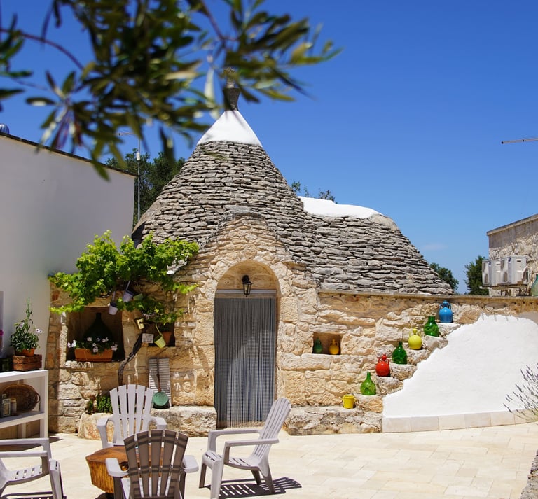 Die historische Masseria Ai Cappuccini, ein Anwesen aus dem 17. Jahrhundert, liegt nur 3 km von Locorotondo entfernt in der Hügellandschaft von Martina Franca und bietet auf einem ca. 3,5 Hektar großen Grundstück absolute Ruhe, Privatsphäre und gute Erreichbarkeit. Mit rund 380 m² Wohnfläche zeichnet sie sich durch eine traditionelle, geschlossene Hofstruktur mit Natursteinmauern aus, deren Herzstück der Innenhof ist, erreichbar durch ein eindrucksvolles Eingangstor.